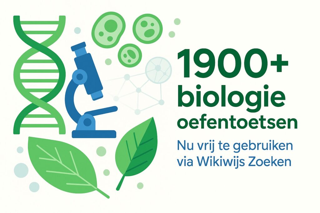 De biologie-oefentoetsen zijn overzichtelijk ingedeeld op onderwerp, subonderwerp, niveau en 17 vakbegrippen — allemaal eenvoudig vindbaar via Wikiwijs Zoeken.